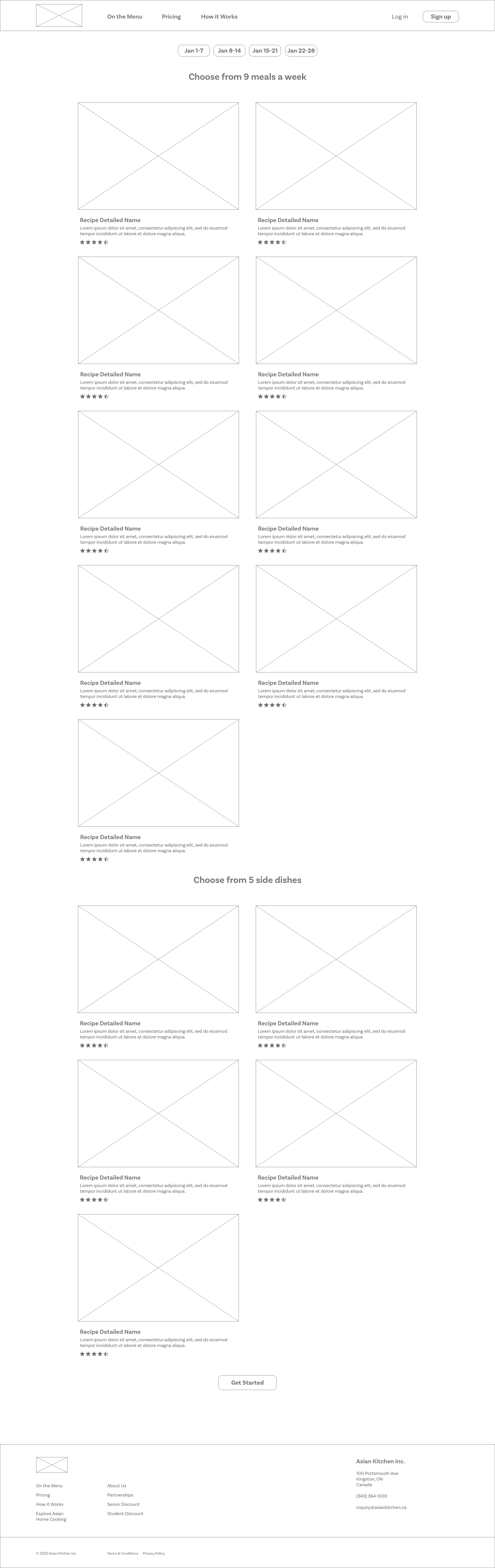 From the IA and site map, I drew up the wireframes in AdobeXD of the different pages in the website to establish the connection between the IA and the visual implementation of the user interface. This ensures that the pages contain the necessary content and are all complete following the page hierarchy. I then conceptualized the branding by creating a logo that captures the essence of the service and selecting colours that are considered appetizing and representative of Asian food. All of these to ensure that the user interface provides a space where users are aware that it is a service related to Asian cooking and food.